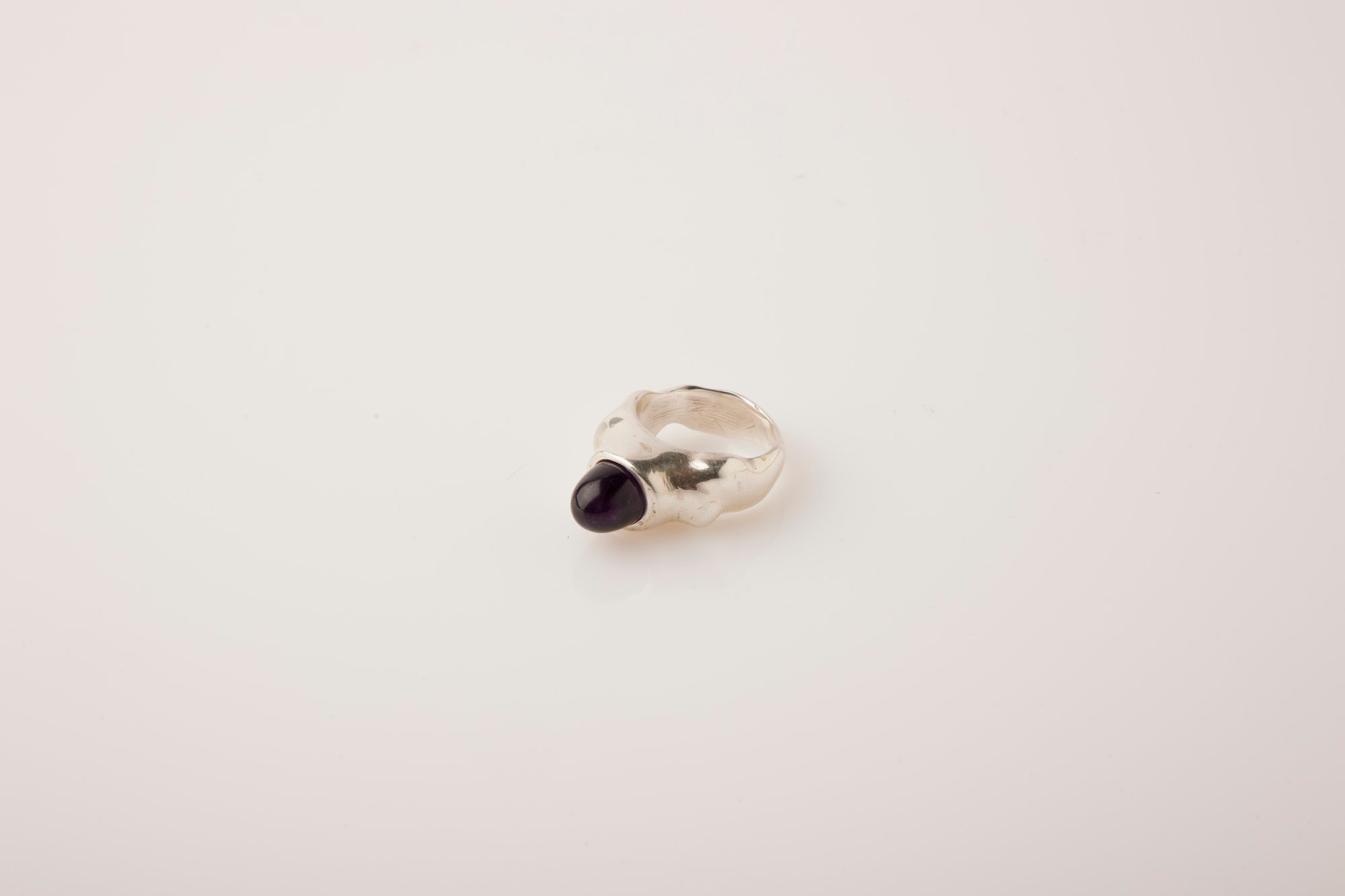 Textured ring made of 925 silver with a amethyst.